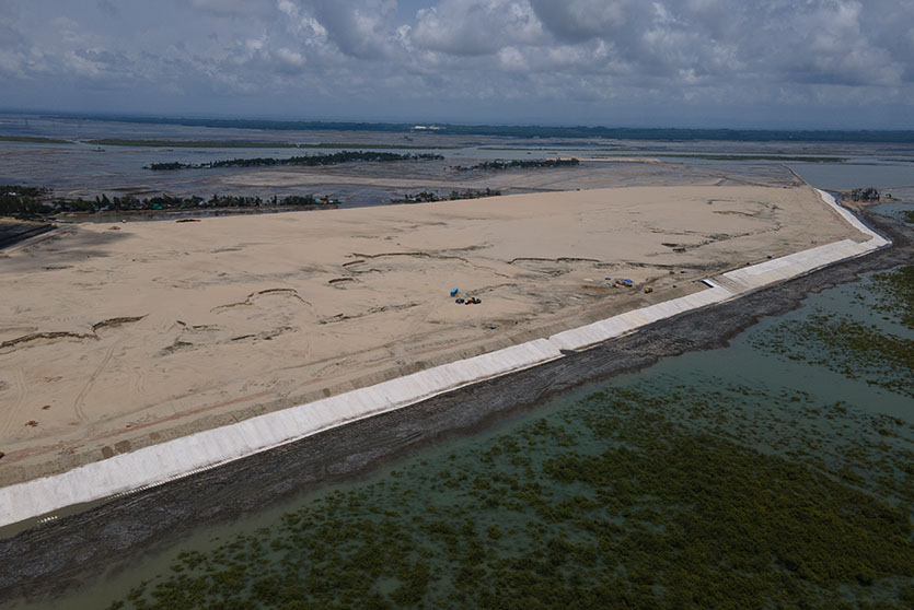 Geotextile made from polyester yarn is used to provide the shape and form. Essential components of TechRevetment are non-woven geotextile filter , woven geotextile fabric form and fine aggregates concrete.
